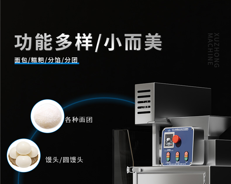 XZ-590搓圓機,商用搓圓機,專注細節匠心品質。功能多樣,小而美,麵包、糍粑、分餡、分團。整機優質不鏽鋼,采用優質201不鏽鋼焊接完成。